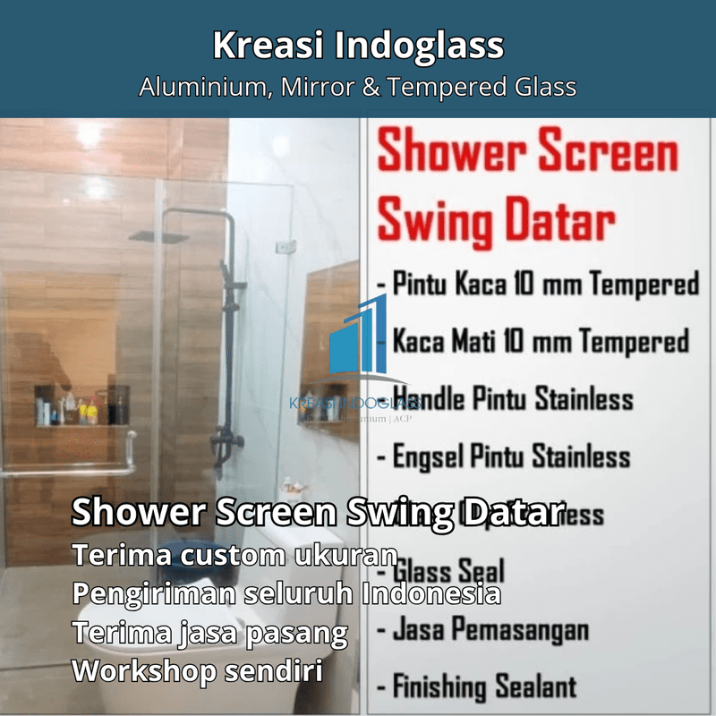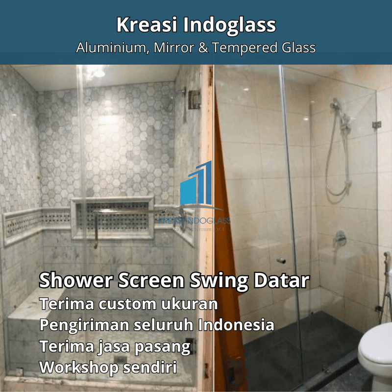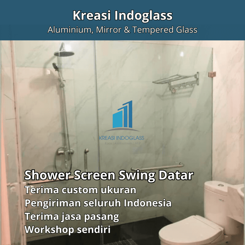 Kaca Pembatas Kamar Mandi Kaca Tempered 10 mm Shower Box Pintu Swing
