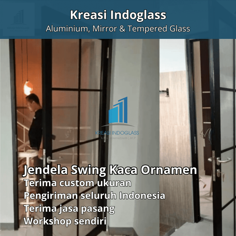 Pintu Alumunium Swing Kaca Ornamen